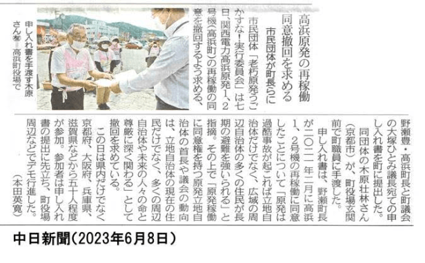 活動報告 「高浜原発1・2号機再稼働反対を高浜町に申し入れ」記事 中日新聞 6月8日 Date: 2023年6月8日Author: kansaigodo 0 コメント 共有: クリックして X で共有 (新しいウィンドウで開きます) X Facebook で共有するにはクリックしてください (新しいウィンドウで開きます) Facebook いいね 読み込み中… 関連