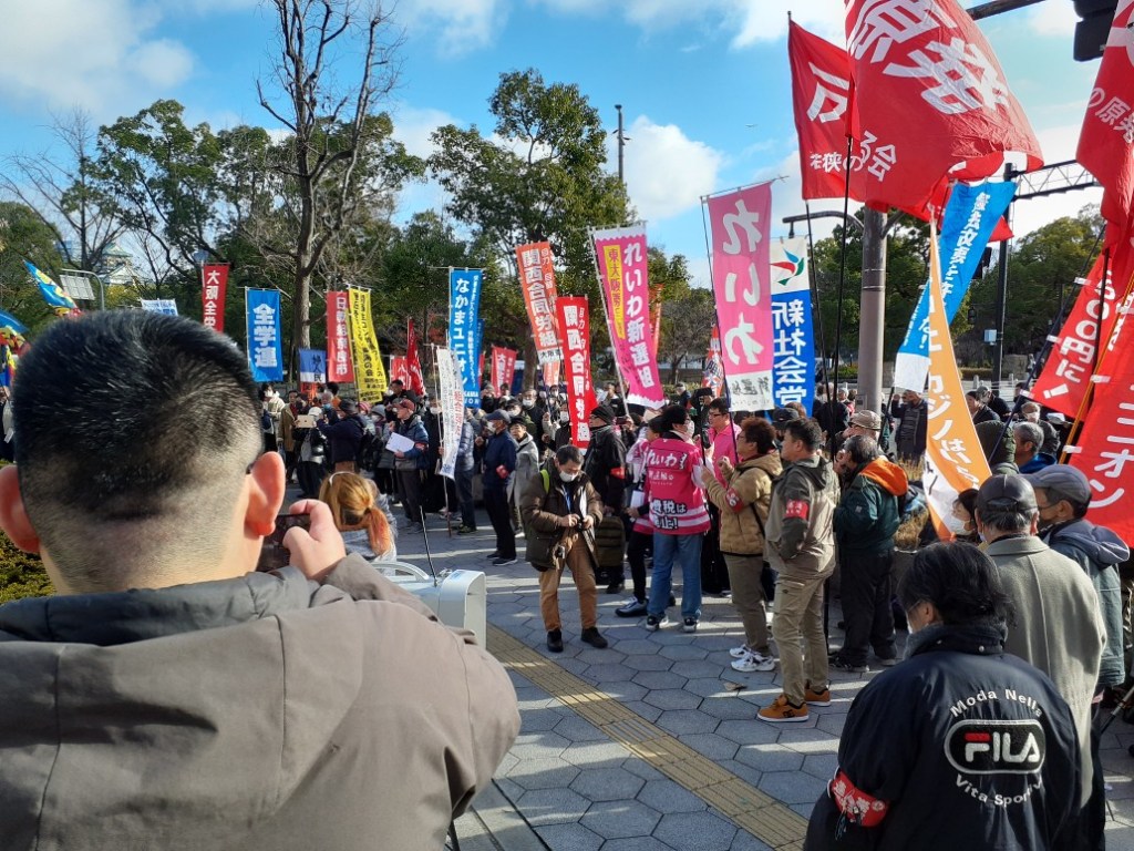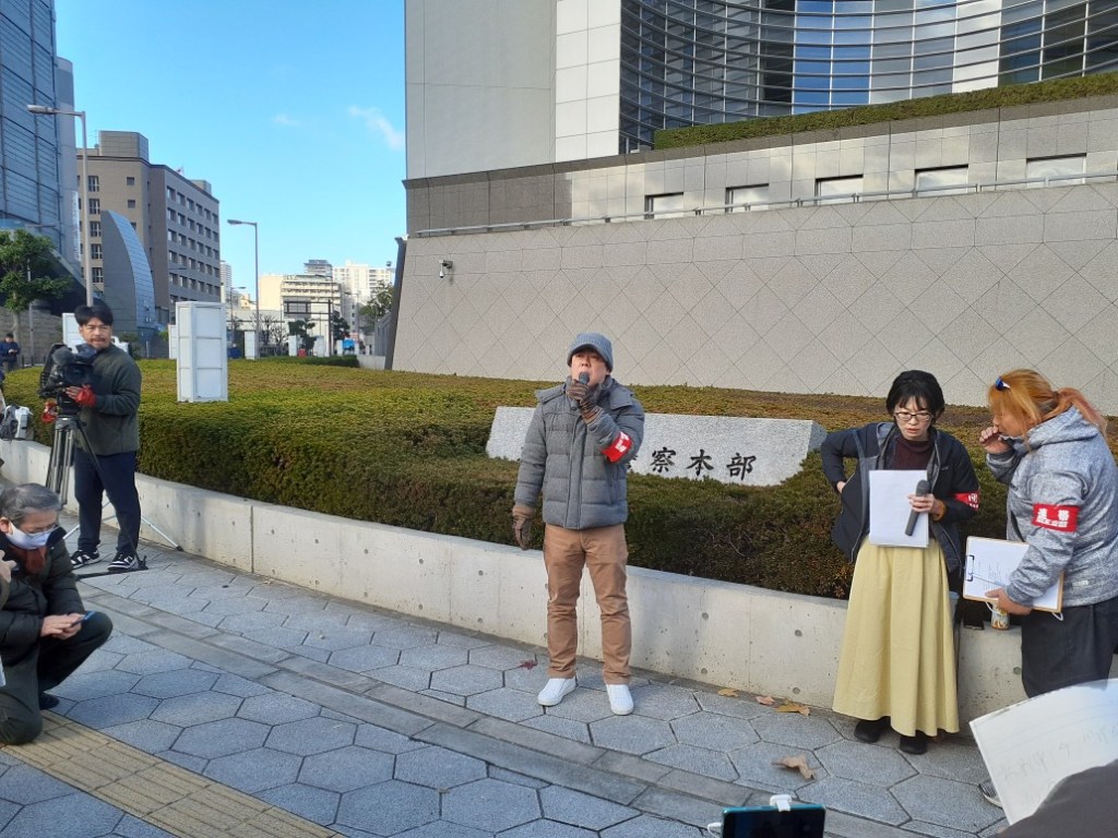 2024年1月1日午前10時、大阪府警本部前に500名の仲間が結集し、2018年に始まった連帯労組関生支部への労働運動つぶしの弾圧に対し抗議の声を上げました。