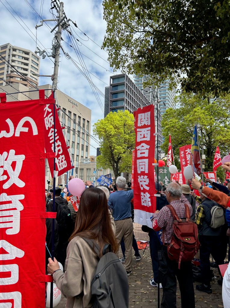 その後、西天満若松公園から梅田ドンキホーテ前までデモ行進をした。