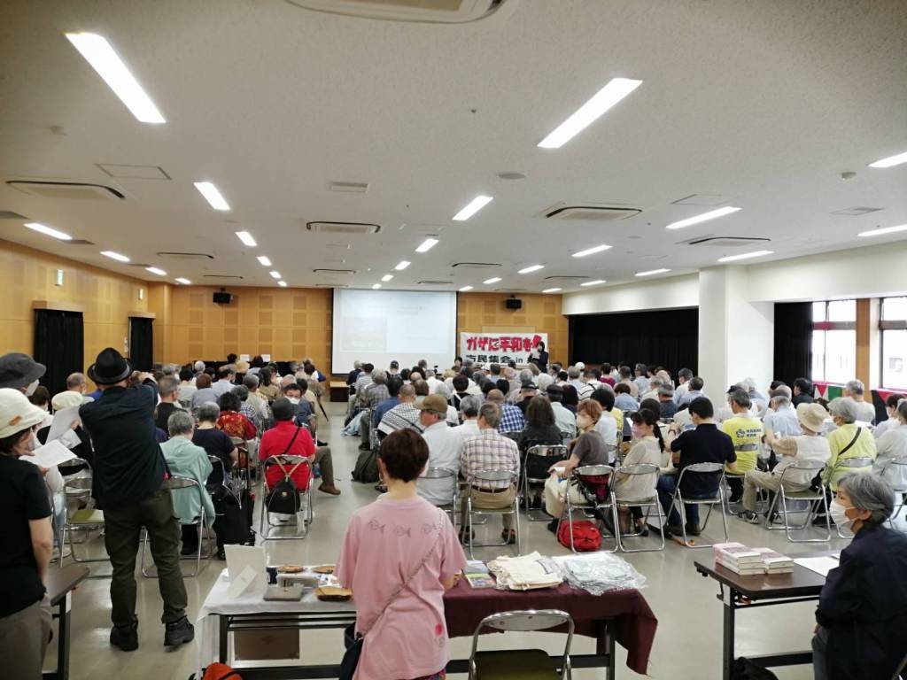 参加は170人余、ムスリムの人たちも参加した。集会後は田浪さん先頭に元町商店街のデモに出た。手を振る買い物客の人たちやデモに加わる人も出た。田浪さんは、10・7以降、毎週夜、原爆ドーム前で、ガザの停戦訴えスタンディングを続けているという。本当に頭が下がる(学生たちはそんな先生を見てどんな思いなんだろう!)。今全国で「一人スタンディング」が急増しているという。