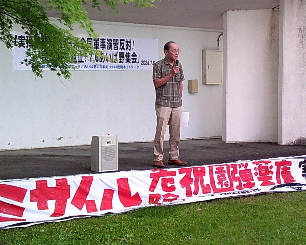米陸軍と陸上自衛隊による日米合同演習「オリエントシールド24」は、7月18日から26日まで、矢臼別、明野、伊丹、饗庭野等でおこなわれ、今回初めて米海兵隊も参加する。饗庭野での演習には陸自約1350名と米陸軍約580名が参加する。この演習に反対する地元集会は、7月6日と7月7日におこなわれたが、6日の集会は、「平和フォーラム関西ブロック」と「あいば野に平和を!2024近畿ネットワーク」の共催で行われ、高島市今津町の住吉公園に約200名が参加した。