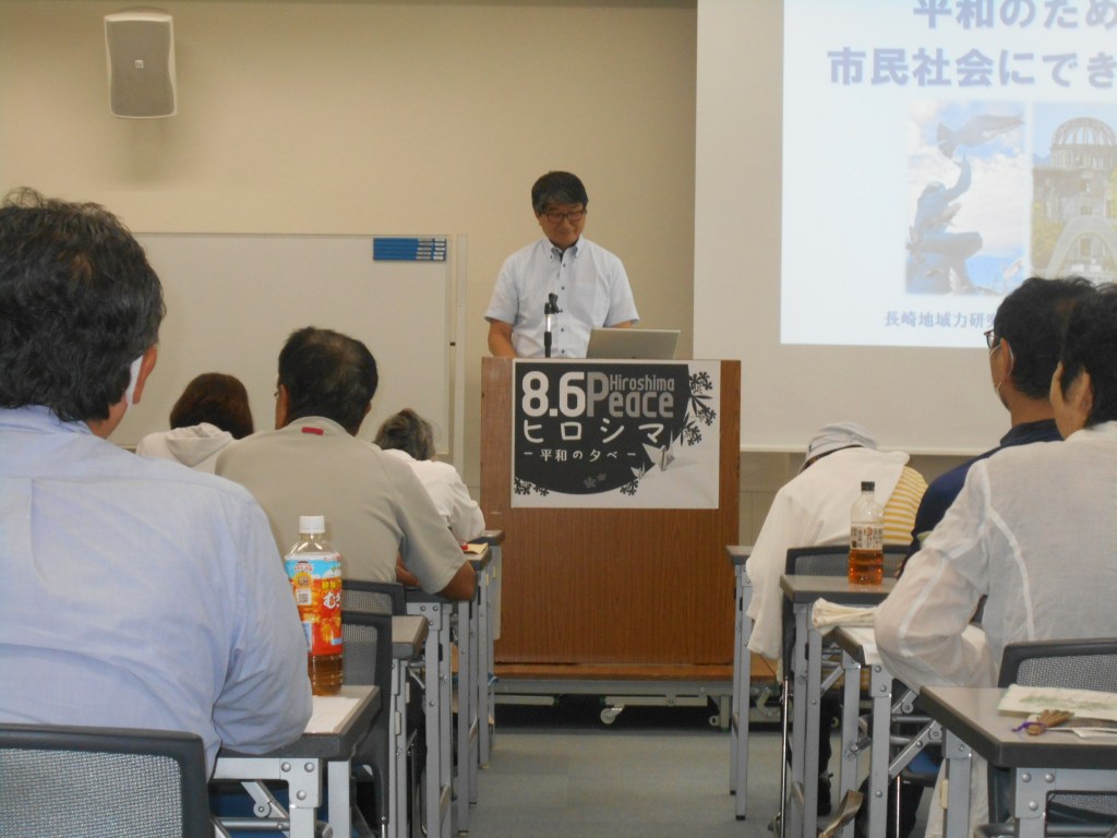前長崎市長の田上富久(たうえ・とみひさ)さんは、平和講演「未来のために私たちができること」と題して長崎市長として平和行政に携わった経験、核軍縮のための市民社会ができる役割について話されました。