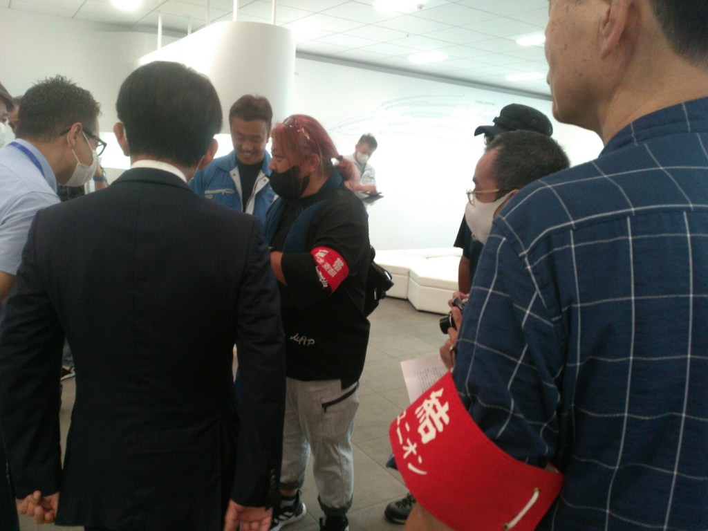 9月13日、おおさかユニオンネットワークは親会社日東電工本社(大阪グランフロント)に韓国分会の加盟通告と早急団交申し入れ行動に立った。