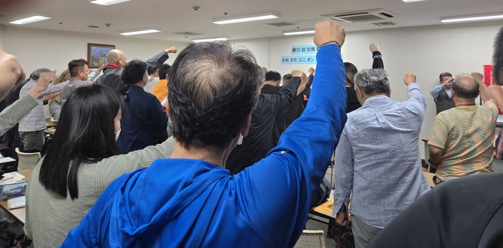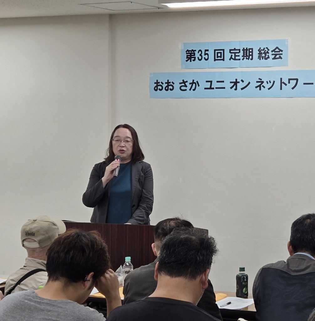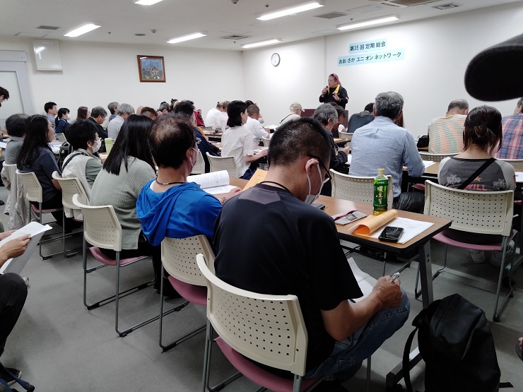 10月10日18時30分からエル・おおさかにおいて、第35回おおさかユニオンネットワーク総会が開催され関西合同労働組合からも参加しました。