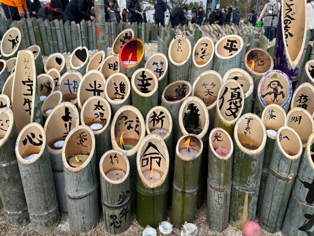 1995年1月17日午前5時46分、阪神淡路大震災が起こった。震災で、6434人が亡くなった。神戸市・中央区の東遊園地公園では灯篭6500本が用意され「よりそう1・17」の文字がつくられた。多くの市民が追悼に訪れた。
