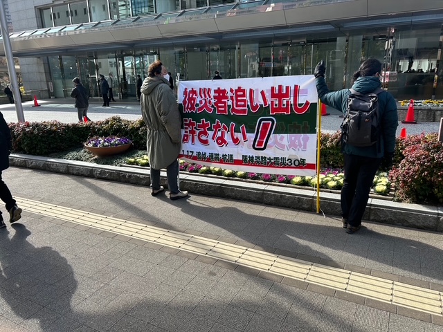 神戸市役所前で「被災者追い出し 許さない!1・17追悼・連帯・抗議 阪神淡路大震災30年」被災地のつどいが開かれた。