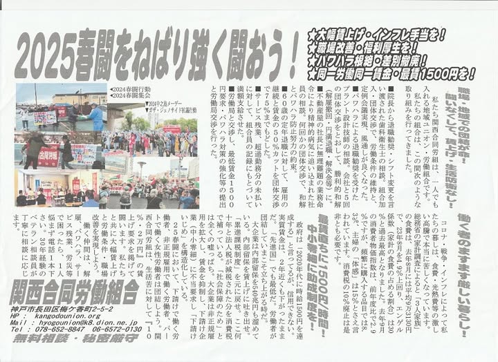 活動報告 関西合同労働組合2025年春闘ビラです。 Date: 2025年2月6日Author: kansaigodo 0 コメント 共有: クリックして X で共有 (新しいウィンドウで開きます) X Facebook で共有するにはクリックしてください (新しいウィンドウで開きます) Facebook いいね 読み込み中… 関連