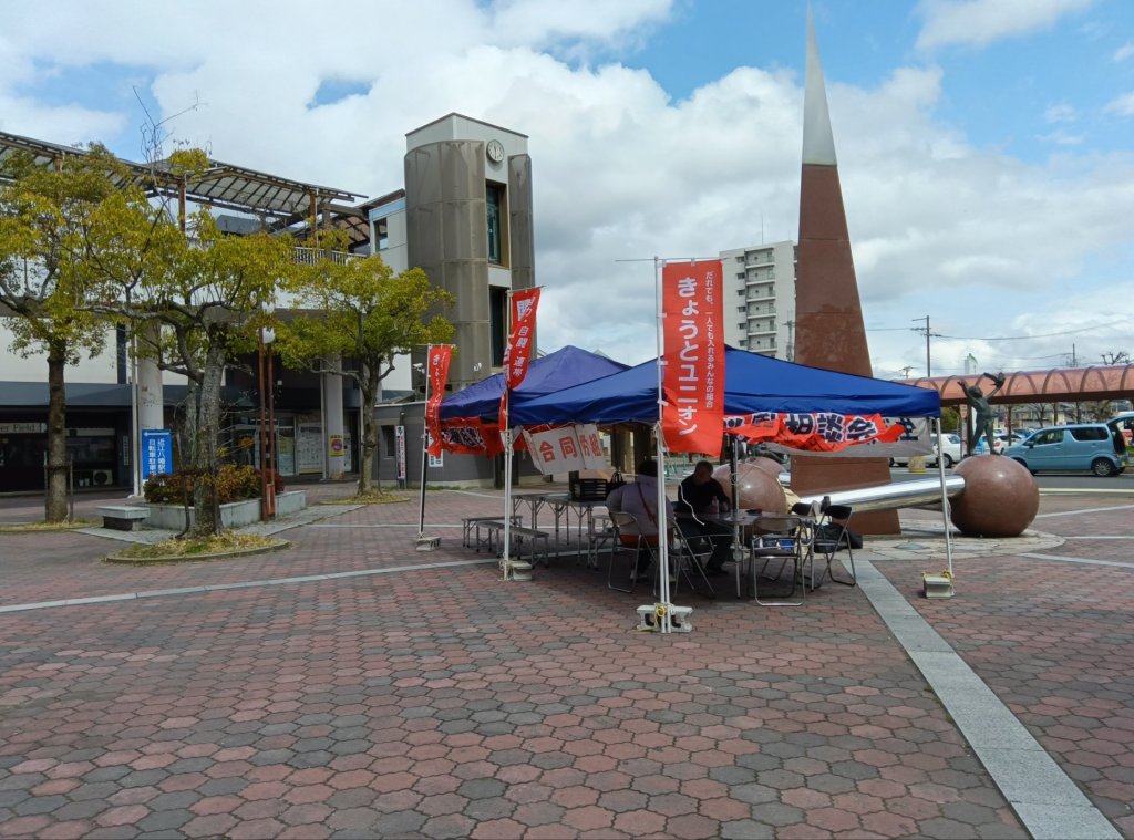 3月30日、きょうとユニオンと関西合同労組滋賀支部をはじめ4労組主催の労働相談会を近江八幡駅南口広場で11時〜15時、テントを張っておこなった。事前に京都新聞と中日新聞が載せてくれ、ビラのポスティングは900枚おこなった。晴れていたが風が強くて寒い日だった。