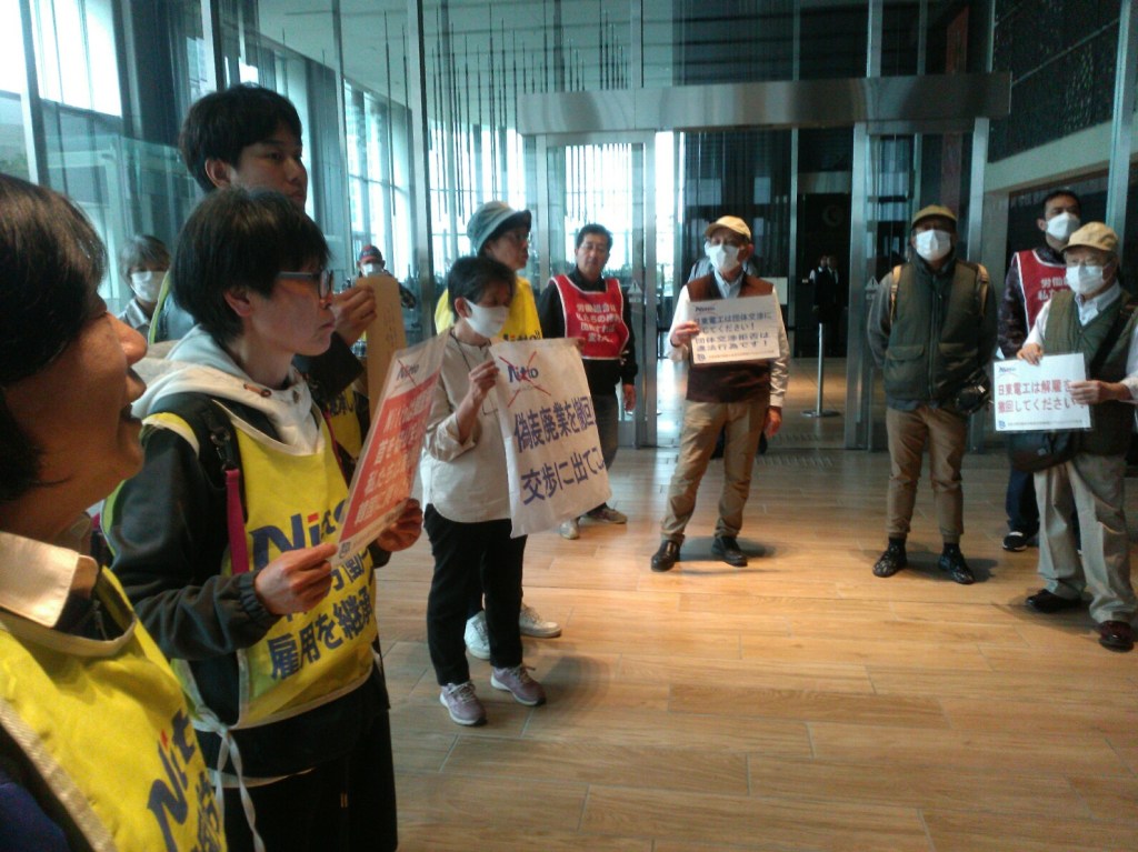 活動報告 3・27韓国オプティカルハイテック労働組合日本遠征団一日行動! Date: 2025年3月31日Author: kansaigodo 0 コメント 3月27日。韓国オプティカルハイテック労働組合の長期遠征行動の最終日が日東電工本社や工場・研究所などある大阪で行われた。多く仲間、支援も集まった。写真は本社前と本社行動。 日東電工はエレベータを止め申し入れ書受け取りを拒否した。 共有: クリックして X で共有 (新しいウィンドウで開きます) X Facebook で共有するにはクリックしてください (新しいウィンドウで開きます) Facebook いいね 読み込み中… 関連