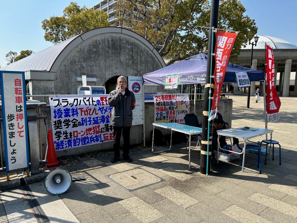 4月7日関西合同労働組合兵庫支部は、神戸市営地下鉄学園都市駅前にて労働相談テントを開設しました。直接の相談はありませんでしたが、名刺ビラを撒ききり、「労働組合を作って25春闘を闘おう」「職場の悩みは関西合同労働組合兵庫支部に相談して下さい」と通行する市民・労働者・学生に訴えました。