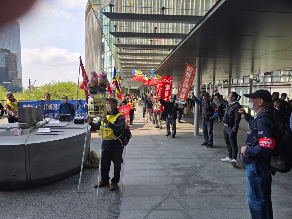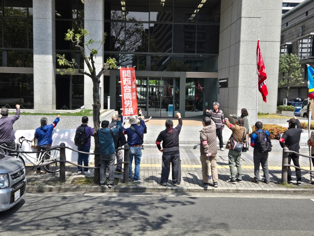 会社解散・全員解雇と闘う韓国オプティカルハイテック労働組合の親会社、日東電工大阪本社前での街頭宣伝