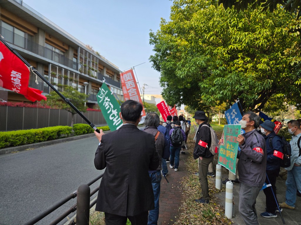 パワハラ、退職強要との闘い、中労委係争中の連帯ユニオンゼネラル支部・社会保険労務士事務所 奏パートナーズ前でのシュプレヒコール