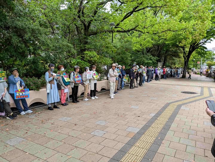 この日の行動の趣旨は、3月に発表された百条委員会と第3者委員会の報告に対し、斎藤知事が「受け止める」と言いながら聞き流し、「受け入れる」ことを拒み、知事の座に居座り続けていることに抗議し、即時辞職を求める県民の意思を示すことにありました。午後3時からの定例記者会見に来られた大勢の報道陣に県民の思いを訴えました。参加者は約150名で、第1波の120名を上回りました。