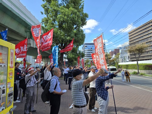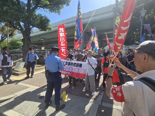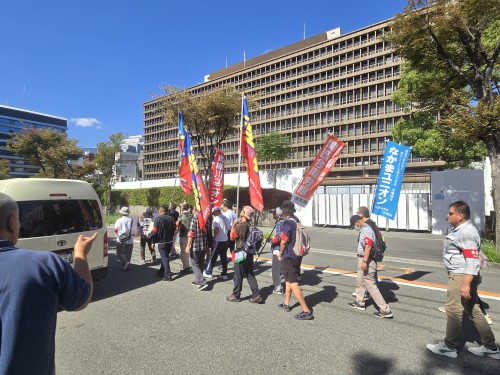 集会のあと約100人で裁判所の周りを、「裁判所は憲法28条を守れ」「公正な判決を出せ」などとシュプレヒコールを上げながらデモを行った。