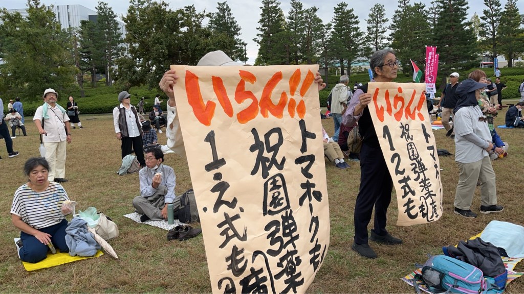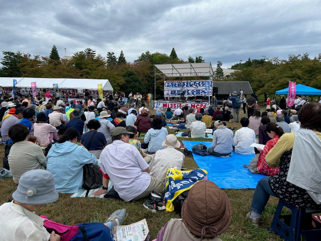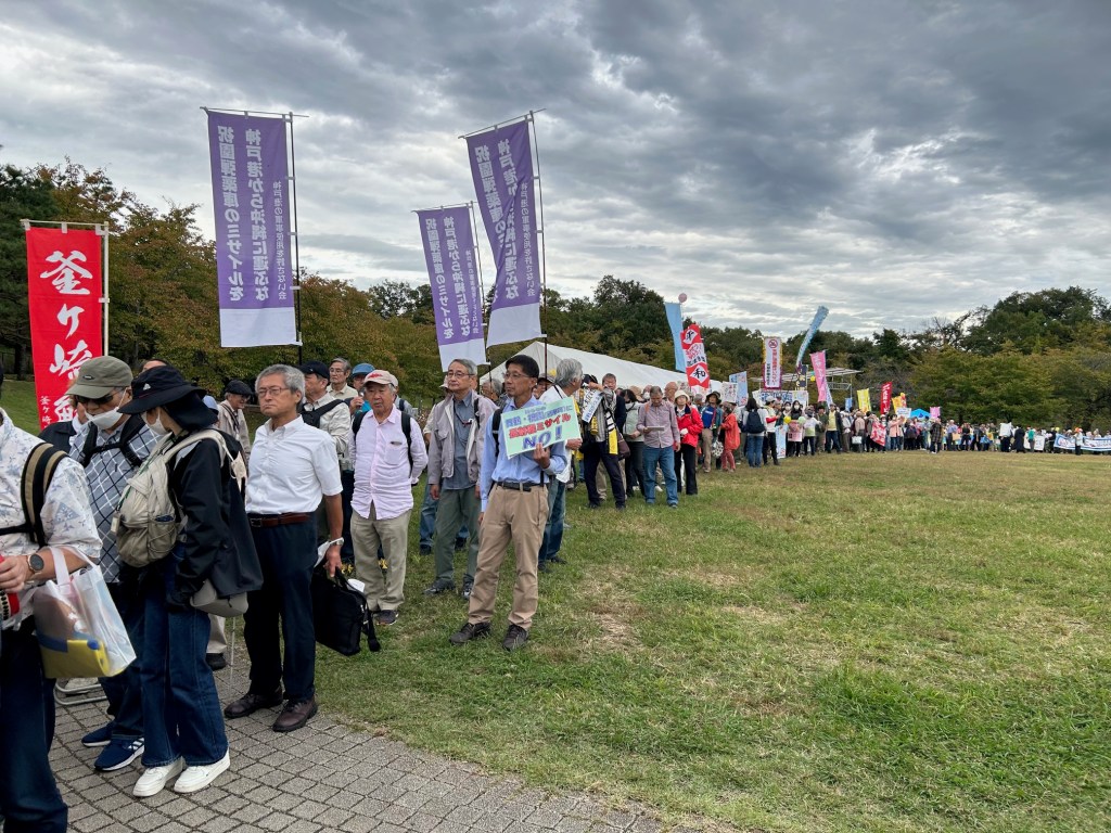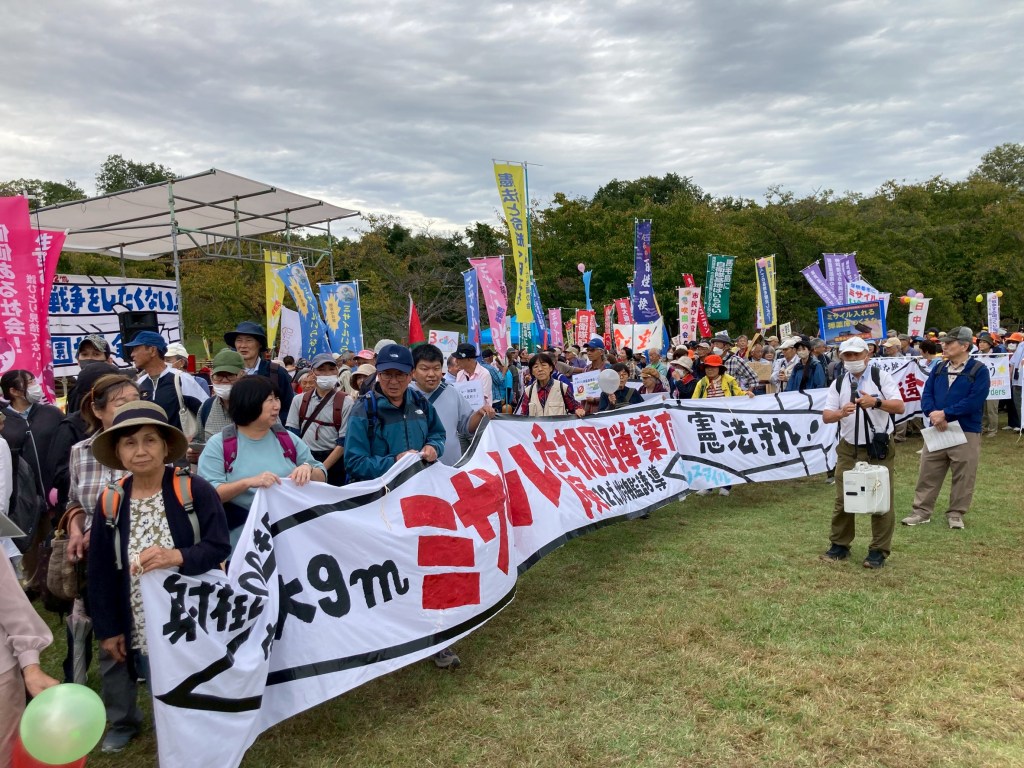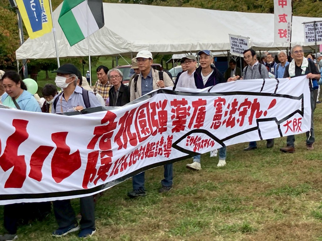 祝園全国集会10月19日、「私たちは二度と戦争はしたくない!平和でこそ文化は香り立つ!祝園全国集会が開かれた。会場の京都・精華町にある「けいはんな記念公園」に2700人を集めました。沖縄、大分、熊本、広島、愛知、神奈川と近畿各地など全国各地からアピールがありました。集会後、「陸自祝園分屯地をミサイル庫にさせない」「弾薬庫設置は、日本全土をミサイル要塞化させる。絶対阻止」などの声を上げ約1時間デモ行進をしました