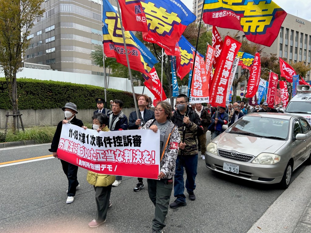 11月18日連帯労組関生支部弾圧の大津第一次事件の判決では、関生支部湯川委員長に対し、懲役3年執行猶予5年、3人の仲間に対しては控訴を棄却する不当判決が下されました。関西合同労働組合はこの正当な労働組合運動への有罪判決を満腔の怒りを持って弾劾します。仲間たち全員の無罪を勝ち取るまで連帯して闘います。