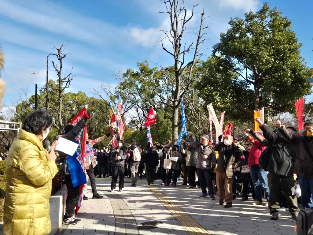労働組合つぶしの大弾圧を許さない実行委員会が呼びかけた2026元旦行動は、450名の労働者、市民が集まって行われた。