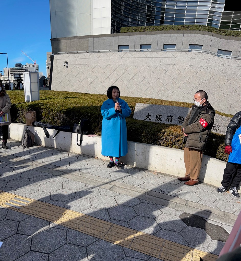 衆議院議員・大石あきこさんは、「国家権力・検察は関生支部を削るといっている、こんなことは許せない。労働組合は世の中を変える存在だ。高市政権は憲法改悪を狙っている。私は憲法審査会の委員になり改憲をゆるさないため、『みっともなく、抗って』いきたい。共に闘いましょう。」