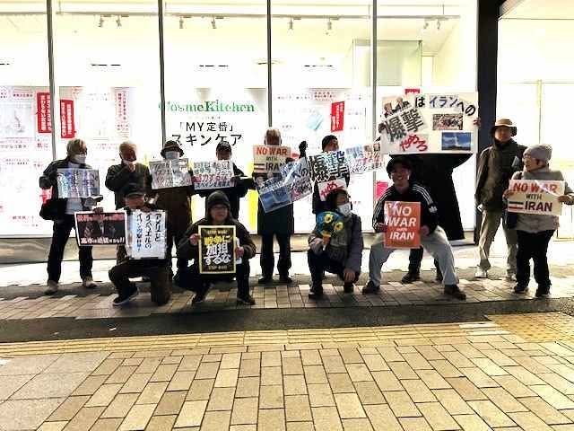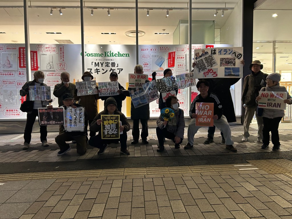 私たちの行動に中年の男性が声をかけ、「ひどい世の中になりましたね。普通の市民、大勢が声を上げないと、この流れは止められないでしょうね」と話していた。これからもアメリカ、イスラエルがイラン攻撃をやめるよう、「戦争反対」の声を上げ続ける。