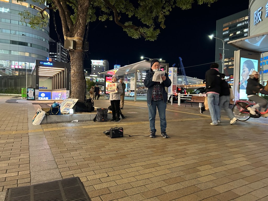 アメリカ、トランプのイランへの大規模攻撃に抗議する、連続緊急行動が各地でとりくまれている。3月11日、神戸では「東日本大震災発生から15年の黙祷」を行ない、その後「アメリカ、イスラエルによるイラン攻撃」に抗議行動を行なった。「攻撃やめろ」「戦争やめろ」「子どもを殺すな」「女性を殺すな」「誰も殺すな」…と、コールをあげた。