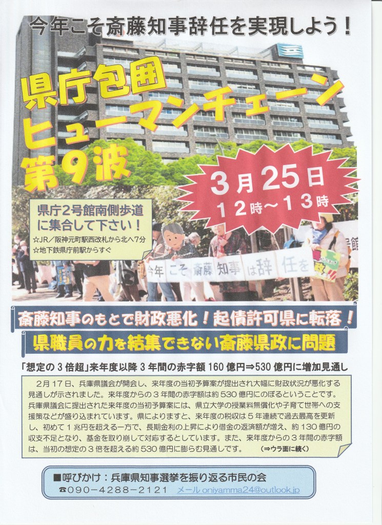 闘争スケジュール 3・25 県庁包囲ヒューマンチェーン第9波 Date: 2026年3月14日Author: kansaigodo 0 コメント 共有: X で共有 (新しいウィンドウで開きます) X Facebook で共有 (新しいウィンドウで開きます) Facebook いいね 読み込み中… 関連