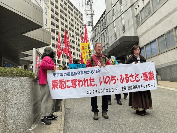 3月22日、神戸・元町にある学校厚生会館において「東京電力福島原発事故から15年」「東電に奪われた、いのち・ふるさと・尊厳」集会が開かれた。参加者は120名を超えた