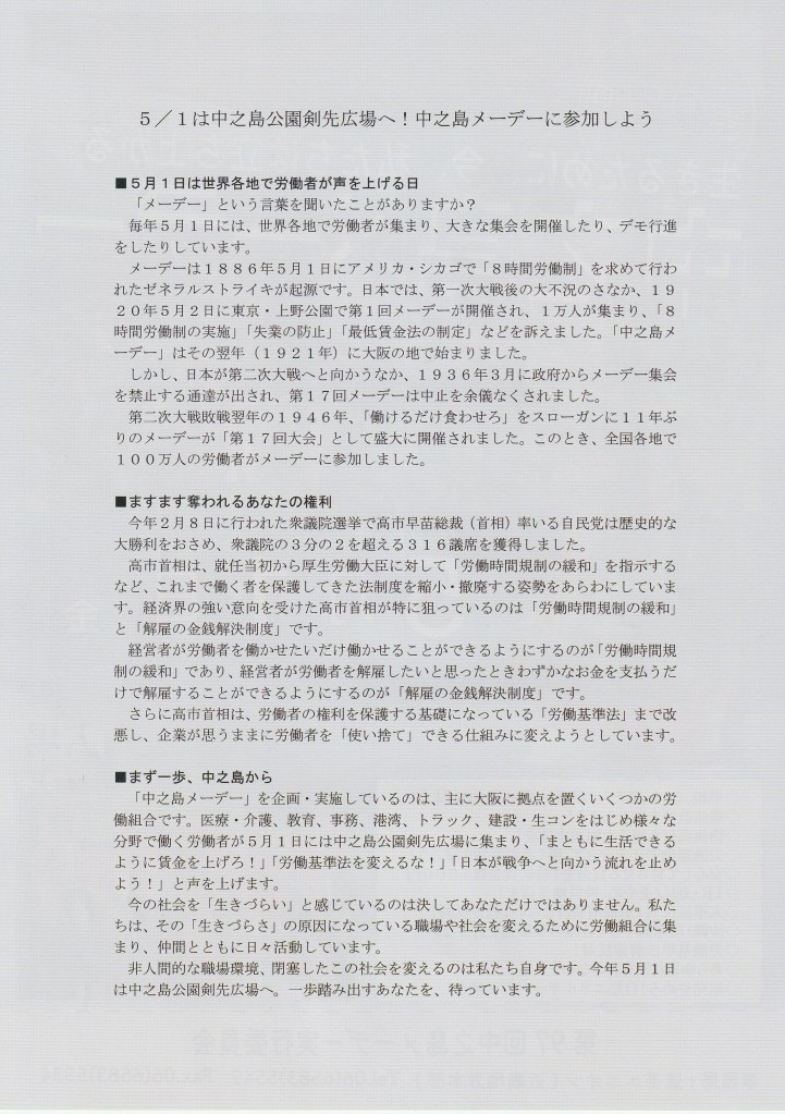 闘争スケジュール 5・1 第97回中之島メーデー Date: 2026年4月1日Author: kansaigodo 0 コメント 共有: X で共有 (新しいウィンドウで開きます) X Facebook で共有 (新しいウィンドウで開きます) Facebook いいね 読み込み中… 関連