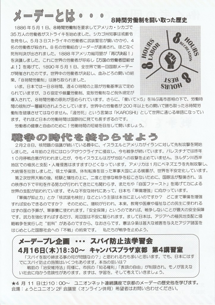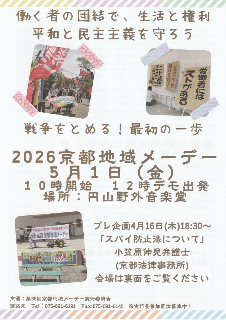 闘争スケジュール 5・1 2026京都地域メーデー Date: 2026年4月1日Author: kansaigodo 0 コメント 共有: X で共有 (新しいウィンドウで開きます) X Facebook で共有 (新しいウィンドウで開きます) Facebook いいね 読み込み中… 関連