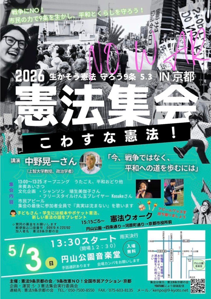 闘争スケジュール 2026 生かそう憲法 守ろう9条 5・3 in京都 憲法集会 Date: 2026年4月12日Author: kansaigodo 0 コメント 共有: X で共有 (新しいウィンドウで開きます) X Facebook で共有 (新しいウィンドウで開きます) Facebook いいね 読み込み中… 関連