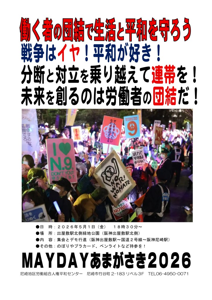 闘争スケジュール 5・1 MAYDAYあまがさき2026 Date: 2026年4月13日Author: kansaigodo 0 コメント 共有: X で共有 (新しいウィンドウで開きます) X Facebook で共有 (新しいウィンドウで開きます) Facebook いいね 読み込み中… 関連